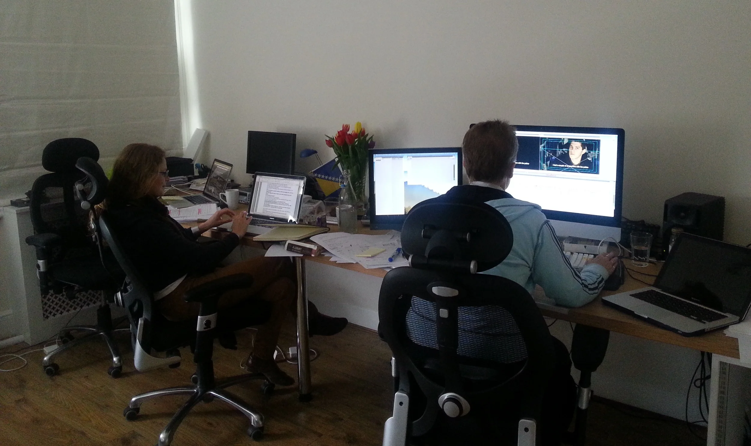 Today we spent the day with Nedim & Leo working on the soundtrack at their home studio here in Sarajevo. We had our first rough cut viewing with them which went really well. From now on for the next three months they will be working non stop on composing BTMs soundtrack